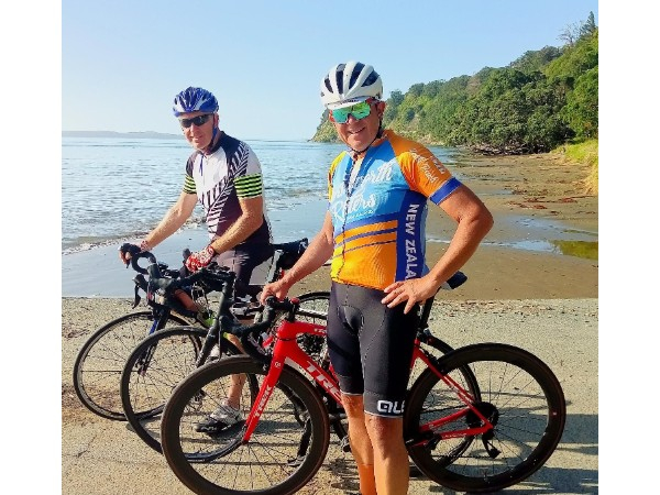 Rob and I [pictured above at lovely Martin's Bay Warkworth] are getting very excited as the Big Day rapidly approaches this Saturday - weather forecast looks promising and kind so far - hopefully we can both hang on to a swift bunch of riders to bank at least 40 laps [50 or more would be an awesome bonus]. Special thanks to all our very kind and generous donors to date - much of them are part of our extended WWR whanau. Hampton Downs is such a magical experience and annual privilege to ride bikes around "car-free" - plus pretty handy training for the Lake Taupo Cycle Challenge 6 weeks later. Rob and I wish all the other riders and Teams a fantastic fun-filled day and safe riding ...